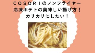 COSORI(コソリ)のノンフライヤーでの冷凍ポテトの美味しい揚げ方について解説します。カリカリにするにはどうすればいいのか?上手くできない原因のほかにも唐揚げの揚げ方についても解説します。